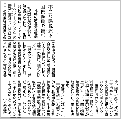 ニュース・新聞に取り上げられました 不当課税未遂事件 2025.09.01 FAREASTEATING株式会社への不当課税事件において、札幌国税局職員を刑事告訴した件について、HTB(北海道テレビ)のニュースと、北海道新聞に取り上げていただきました。